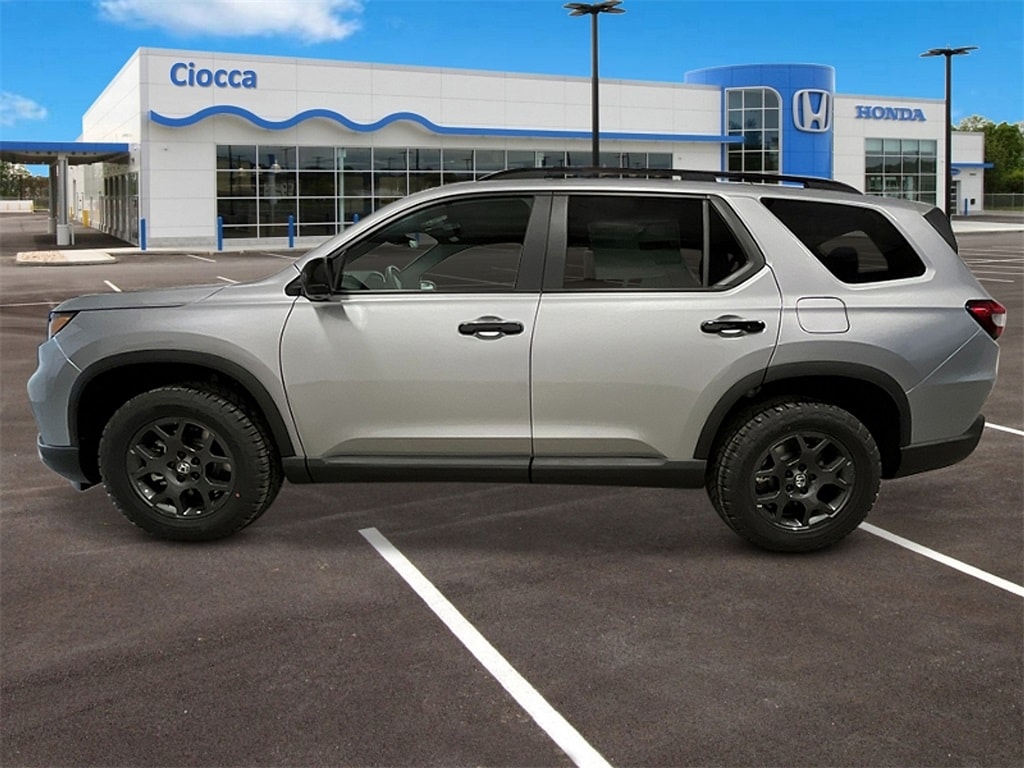 2025 Honda Pilot TrailSport Pilot TrailSport, 4D Sport Utility, AWD, Silver Metallic, Blk Durable Synthetic Lth Artificial Leather, Adaptive Cruise Control: Adaptive Cruise Control (ACC) with Low-Speed Follow, Apple CarPlay/Android Auto, Automatic temperature control, Blind Spot Information (BSI) System warning, Fully automatic headlights, Heated front seats, Lane departure: Lane Keeping Assist System (LKAS) active, Memory seat, Power Liftgate, Power moonroof, Reclining 3rd row seat, Steering wheel mounted audio controls. $3,063 off MSRP!