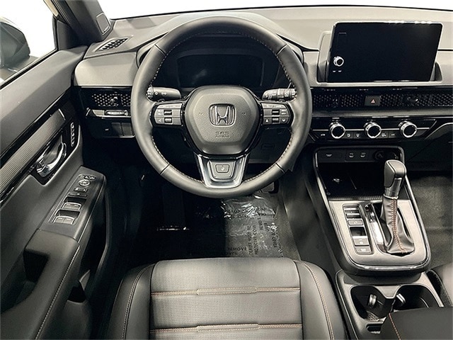 Inside, the Sport Touring offers a premium experience defined by leather-trimmed seating with signature orange stitching and a driver-focused cockpit that includes a 10.2-inch fully digital instrument cluster. It serves as the technological hub of the CR-V family, being the only trim to feature Google built-in, which integrates Google Assistant, Google Maps, and Google Play directly into the standard 9-inch HD touchscreen. Passengers benefit from an immersive 12-speaker Bose Premium sound system and a remarkably quiet cabin thanks to standard acoustic glass and active noise cancellation.