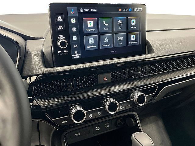 The 2026 Honda CR-V Hybrid Sport Touring AWD represents the premium peak of the CR-V lineup, offering a refined driving experience with standard Real Time AWD and a sophisticated 204-horsepower two-motor hybrid powertrain. This top-tier trim is distinguished by its high-end technology, featuring Google built-in integration, a 12-speaker Bose Premium Sound System, and a 10.2-inch digital instrument cluster paired with a 9-inch color touchscreen. Designed for maximum comfort, the interior includes leather-trimmed seating with orange contrast stitching, a heated steering wheel, and ambient cabin lighting, while convenience is enhanced by a hands-free access power tailgate and rain-sensing wipers. Riding on 19-inch gloss-black alloy wheels, the Sport Touring AWD maintains an impressive EPA-estimated 37 combined MPG while providing a comprehensive suite of safety features through the standard Honda Sensing system, including front and rear parking sensors and Low-Speed Braking Control.