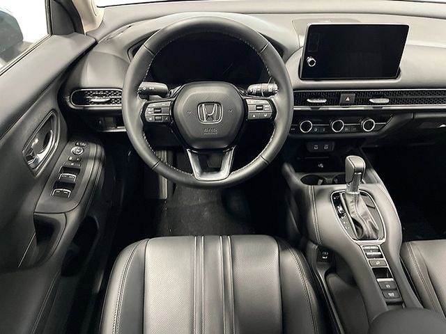 The 2026 Honda HR-V EX-L AWD is the premium, top-tier trim of Hondas subcompact SUV, featuring a 2.0-liter four-cylinder engine that produces 158 horsepower and 138 lb-ft of torque paired with a continuously variable transmission (CVT). Equipped with Real Time All-Wheel Drive with Intelligent Control System, this model delivers an EPA-estimated 25 city/30 highway/27 combined MPG while offering enhanced traction for varied road conditions. As the most refined trim in the lineup, the EX-L is distinguished by its leather-trimmed interior, 8-way power-adjustable drivers seat, and dual-zone automatic climate control. Technology is anchored by a standard 9-inch color touchscreen with wireless Apple CarPlay and Android Auto integration, a wireless phone charger, and an 8-speaker premium audio system. Additionally, the EX-L includes exclusive features such as front and rear parking sensors, low-speed braking control, and a one-touch power moonroof, all while maintaining 55.1 cubic feet of maximum cargo space with the 60/40 split rear seats folded.