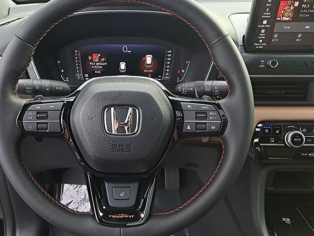 2026 Honda Passport TrailSport Elite Passport TrailSport Elite, 4D Sport Utility, AWD, Crystal Black Pearl, Bwn Perforated Lth Leather, Adaptive Cruise Control: Adaptive Cruise Control (ACC) with Low-Speed Follow, Apple CarPlay/Android Auto, Automatic temperature control, Blind Spot Information (BSI) System warning, Fully automatic headlights, Heated and Ventilated Front Bucket Seats, Heated steering wheel, Memory seat, Navigation system: Google Maps, Power Liftgate, Power moonroof, Steering wheel mounted audio controls.