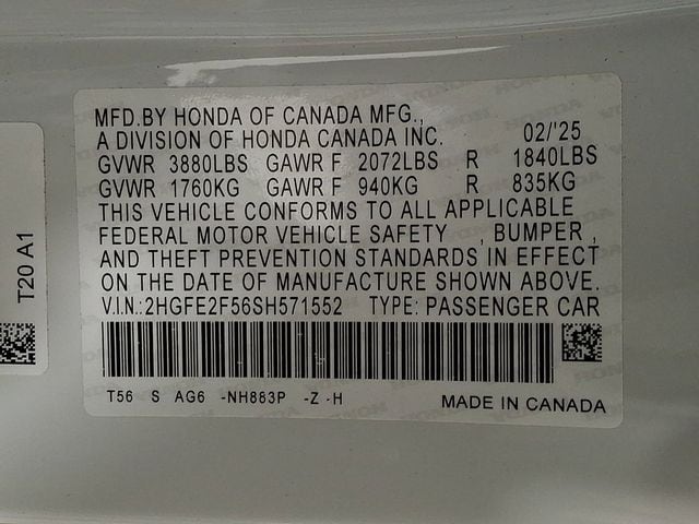 Civic Sport, FWD, Black w/Cloth Seating Surfaces, Adaptive Cruise Control: Adaptive Cruise Control (ACC) with Low-Speed Follow, Auto High-beam Headlights, Automatic temperature control, Blind Spot Information (BSI) System warning, Electronic Stability Control, Exterior Parking Camera Rear, Fully automatic headlights, Illuminated entry, Power steering, Remote keyless entry, Steering wheel mounted audio controls.